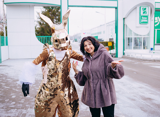 В ГК «Белая Долина» 6 марта прошло поздравление всех сотрудниц с праздником. Ранним утром на проходной предприятия работников встречала яркая фотозона, играла музыка, веселый мишка и зайцы дарили праздничное настроение. Все женщины получили в подарок цветы.