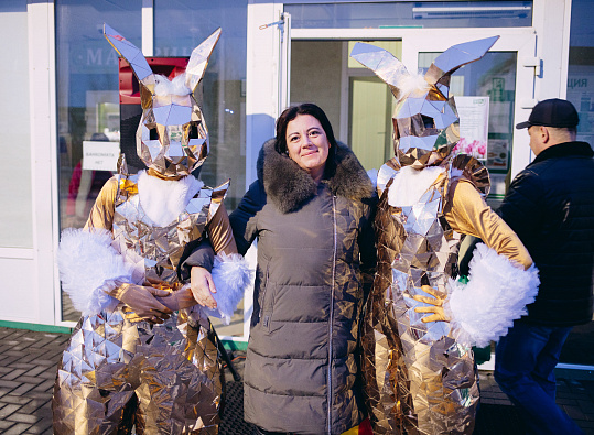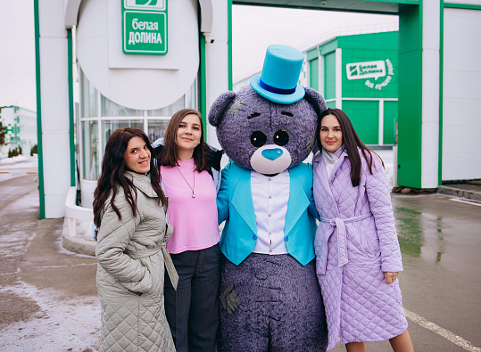 В ГК «Белая Долина» 6 марта прошло поздравление всех сотрудниц с праздником. Ранним утром на проходной предприятия работников встречала яркая фотозона, играла музыка, веселый мишка и зайцы дарили праздничное настроение. Все женщины получили в подарок цветы.